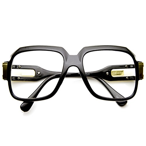 -. Title : MLC Eyewear Oversized Rectangular Hip Hop Nerdy Black and Gold Clear Lens Glasses