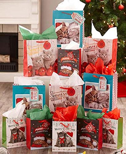 Studio : LTD Publisher : LTD Binding : Health and Beauty Product Description Add even more joy to their celebration with the to-die-for faces on this 24-Pc. Cat Holiday Gift Bag Set. You'll have everything you need to give presents an adorable finishing touch. It comes with 4 different designs that feature your favorite pets participating in holiday festivities. Each bag comes with its own gift tag. Friends and family will love the wrapping as much as the present 24-Pc. set includes: 6 Small bags, 7"W x 4"D x 9"H, each 6 Medium bags, 10"W x 5"D x 12"H, each 12 Sheets of tissue paper, 20" sq., each 3 Green 3 Red 6 White 0