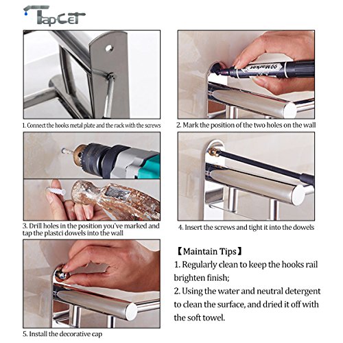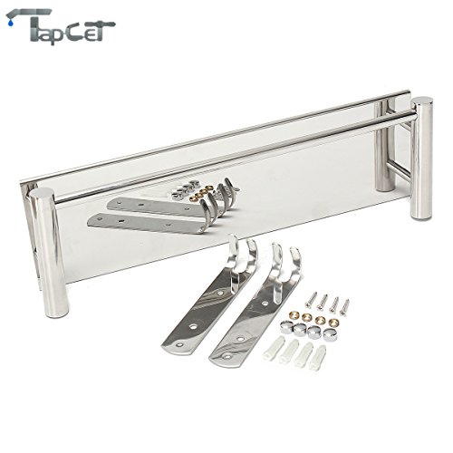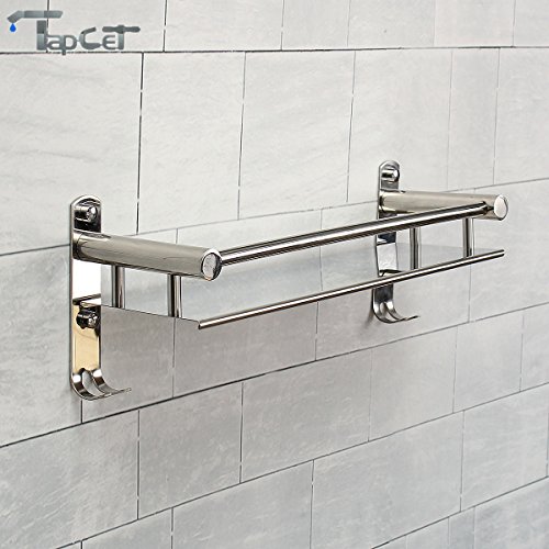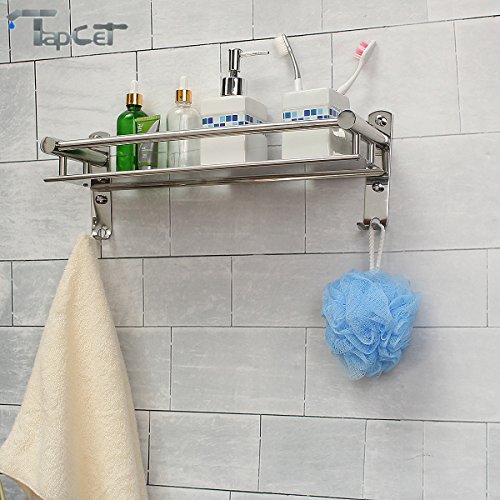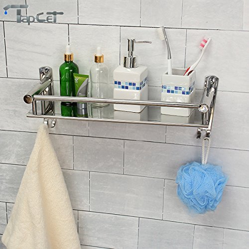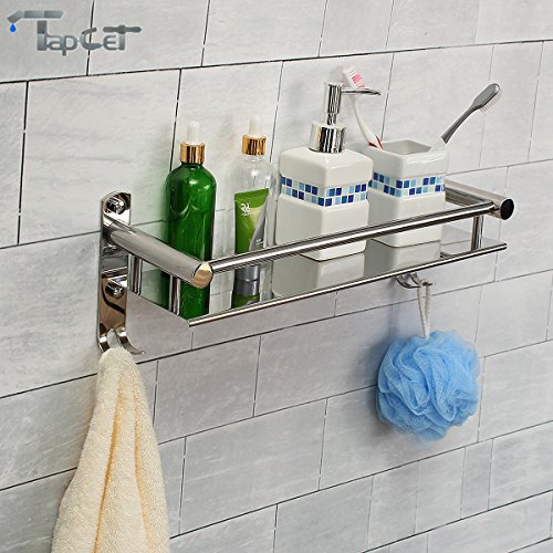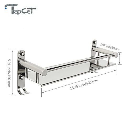 TAPCET Bathroom Shelf Stainless Steel Rectangular Shelf Wall Mounted Tempered 400mm 15.75 inch Bathroom Single Layer Shelf with Hook