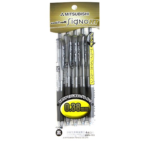 "Uni knock formula gel ink ballpoint pen Uni-ball RT 0.38 black 5 pieces" is darker in aqueous pigment gel ink use Nijimazu is a smooth writing feeling of a ball-point pen. It has excellent light resistance water resistance. Perfect for notebook for office and the ultra-fine chip in the adoption of a portable. Offers superior stainless steel chip in robustness. Easy to grip with a rubber grip. It has adopted a spring chip to prevent the ink DC. Ball diameter is 0.38mm.