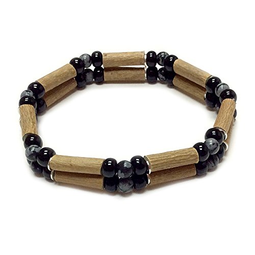 -. Feature : The Pure Hazelwood double bracelet helps relieve mouth sores, joint pain, heartburn, skin problems, and more! / Hazelwood is rich in polyphenols and has antioxidant, antibacterial and anti-inflammatory effects / Made with 100% natural hazelwood from the Canadian boreal forest and genuine Snowflake Obsidian beads / 2 sizes available: 7" (18 cm) and 8" (20 cm), on elastic; comes in a plastic package to preserve freshness of the wood. / By Pure Hazelwood, world leader in the hazelwood products market for more than 17 years