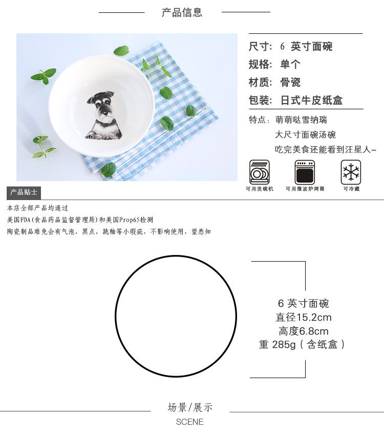 新款雪纳瑞系列大号汤碗大面碗可爱创意狗狗图案圆形饭碗大沙拉碗