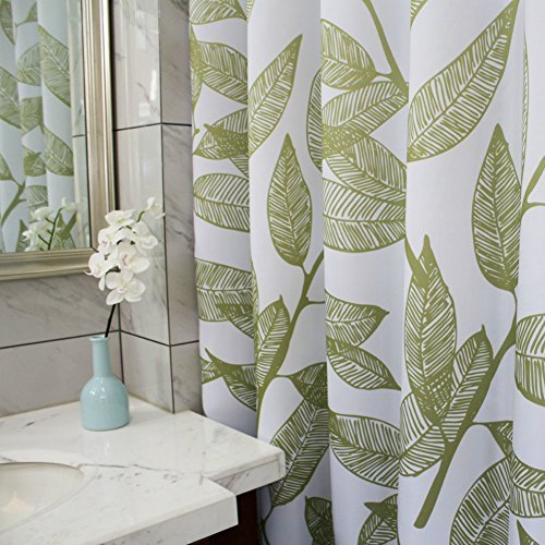 MANGGOU LEAVES FABRIC SHOWER CURTAIN,WATERPROOF POLYESTER BATHROOM CURTAIN,DECORATIVE SHOWER CURTAIN LINER WITH 12 HOOKS,MILDEW RESISTANT,MACHINE WASHABLE,72 X 72 INCH ,GREEN