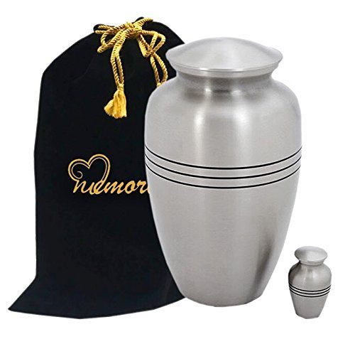 Classic Pewter Urn With Free Keepsake - Large Grecian Pewter Cremation Urn Set - Handcrafted Classic Silver Urn for Ashes - Large Urn With Free Keepsake and Urn Bag
