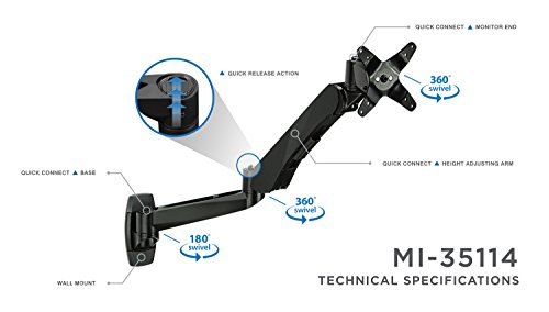 -. Feature : Single LCD Computer monitor wall mount. Articulating arm provides a wide range of available movements / Mount-It! Provides all the necessary hardware and assembly instructions for installation / Monitor bracket can tilt up or down over 105 degrees / Rotate your screen from landscape to portrait in order to read long graphs, articles, spreadsheets and more! / Height adjustable gas-sP.R.Ing arm allows you to raise and lower your monitor over 11.5".