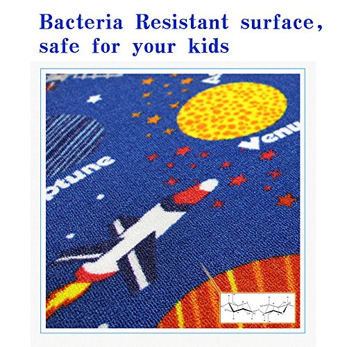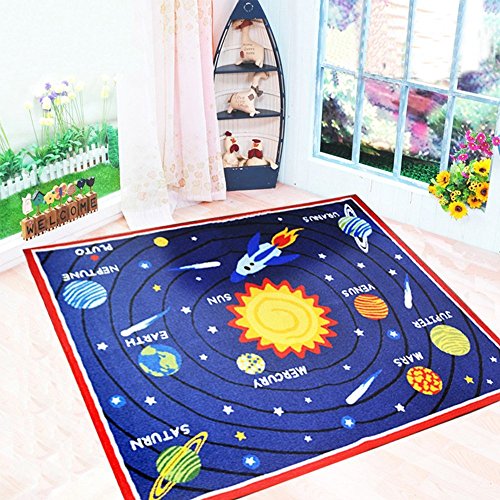 This colorful rug depicts different letters, numbers, shapes and colors that kids can identify easily,and it represents the solor system,which can encourage kids' natural curiosity for learning and discovery.