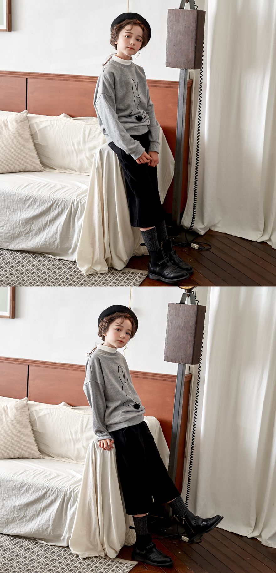 따뜻한 울 혼방 소재로 디자인한 팬츠예요~ 약간 짧은듯한 기장에 와이드한 A라인 팬츠라 블라우스, 맨투맨 등과 함께 코디할 때 포인트 주기 딱 좋은 아이템이랍니다;) 까실거리지 않아 부담 없이 착용 가능하고 허리는 밴딩 처리하였으며 주머니가 깊어 더욱 편하게 코디할 수 있는 제품이에요~