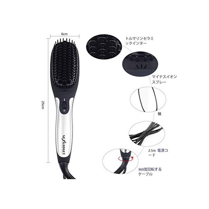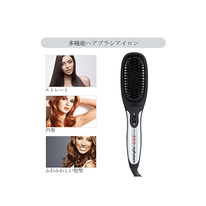 원본상품명: ヘアアイロン NexGadget ブラシアイロン ストレトカル マイナスイオン 30秒急加熱ブラシ 量 くし型アイロン 乾 使いやすい 電防止 265ºF~450ºF度調整可能 火