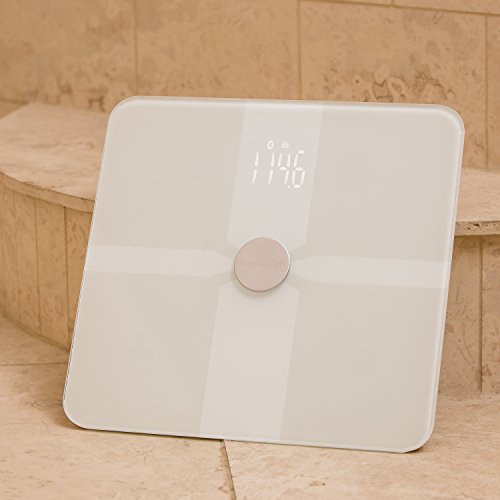 -. Feature : Smart body composition analyzer with Bluetooth connection to the smartphone/tablet that uses iOS or android / Measures: Body weigh, body fat content, body muscle weigh, body water content, body bone mass, visceral fat, BMI and BMR / High quality tempered glass weighing scale with back light LED display, auto on/off and Bluetooth signal detection / Modern design, battery energy low consumption, up to 4 lb. weighing capacity and .5 Lb. actuary, weight measuring units lb./kg