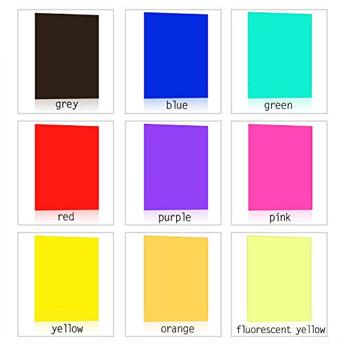 Various colors: these gel filters in 9 different colors, red, yellow, green, blue, purple, orange, pink, grey, fluorescent yellow, each color for 1 piece