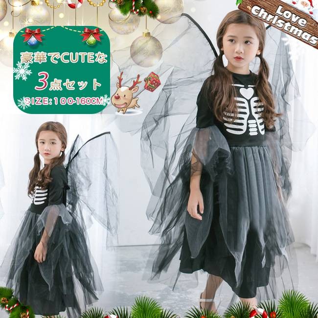 クリスマス コスプレ 子供 女の子 魔女 吸血鬼 バンパイア デビル コスチューム 衣装 ジュニア キッズ 子ども 仮装 変装 服 セットアップ かわいい パーティーグッズ イベント用品 xmas Christmas cos
