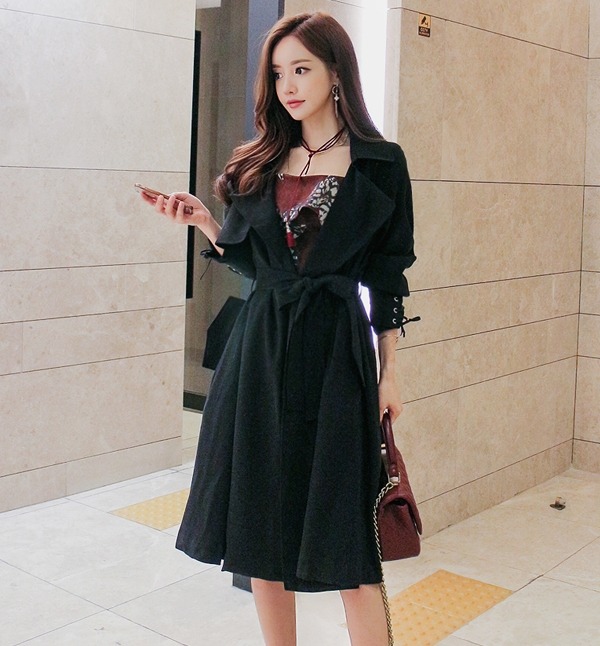 베이직한 디자인의 트렌치코트에 소매부분에