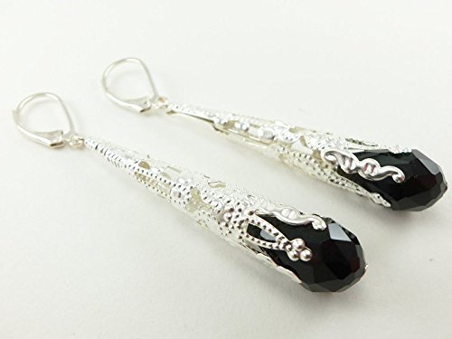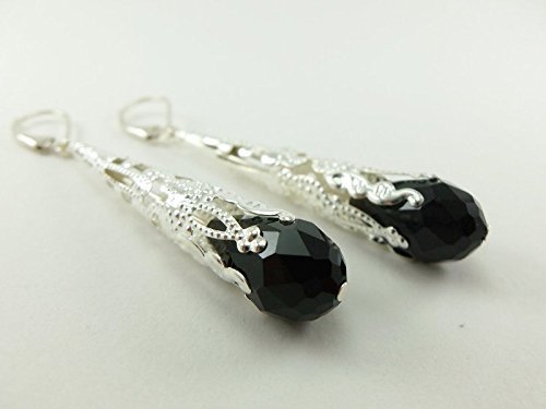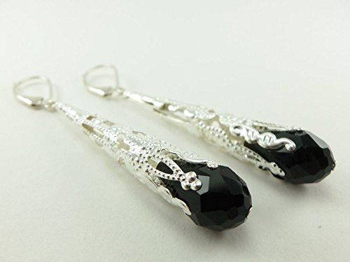 -. Title : Black Silver Earrings Long Dangle Filigree Earrings Victorian Jewelry Classic Formal Prom Earrings