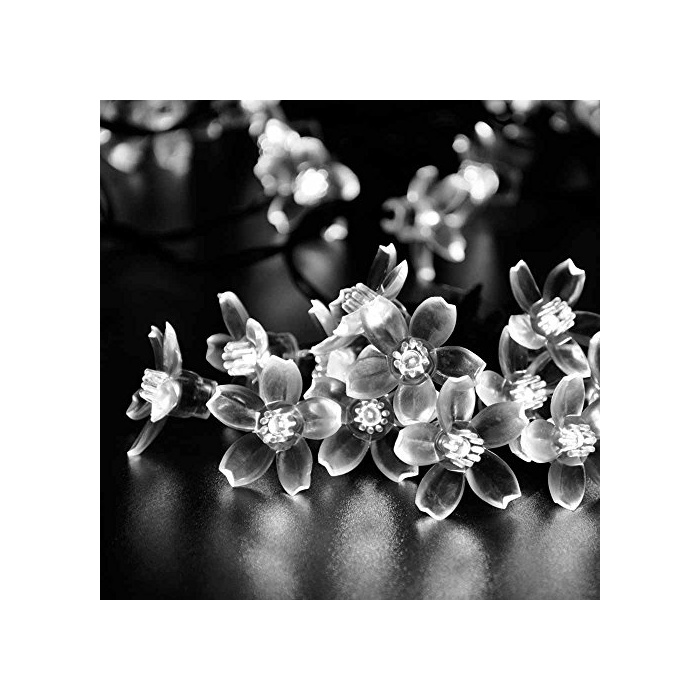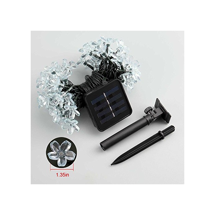 LederTEK (리더 테크)lederTEK 솔라 방우방수형 백색 도꽃 모양 전광 장식 일류미네이션 LED 6.4m 50공 8점멸 모델 크리스마스 가든 라이트 신년 장식