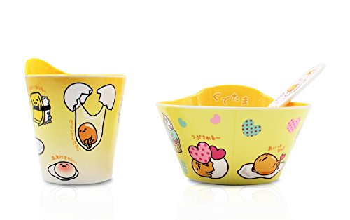 Set of 3 - Yellow & White Gudetama Meal Set - Cup, Spoon, Bowl