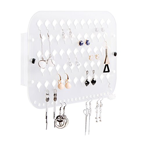 JackCubeDesign Wall Mount Earring Jewelry Holder Organizer hanger Storage Rack Display Clear Acrylic with 53 Holes(Clear, 11 x 7.48 x 0.98 inches) – MK325B