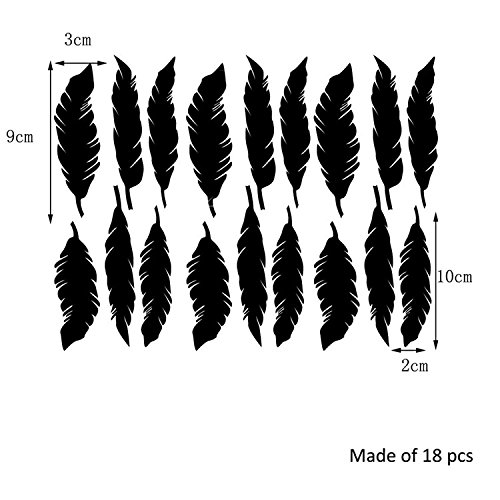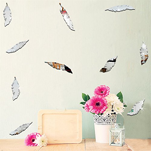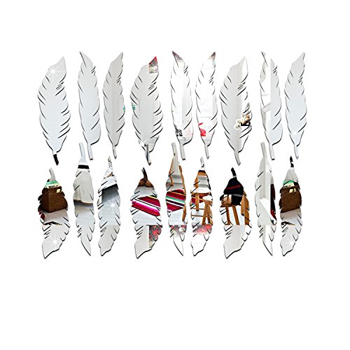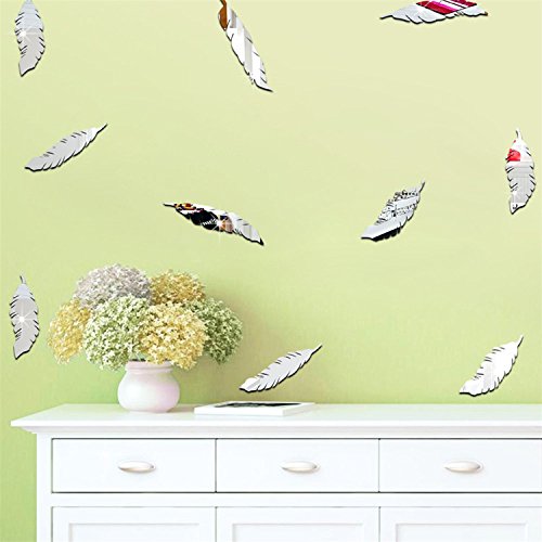 AmazingWall 2x10cm/0.8x3.9" Mirror Feather Wall Sticker Living Room Bedroom Kids' Room Nursery Decor Home Decorations Removeable 18PCS/SET,silver