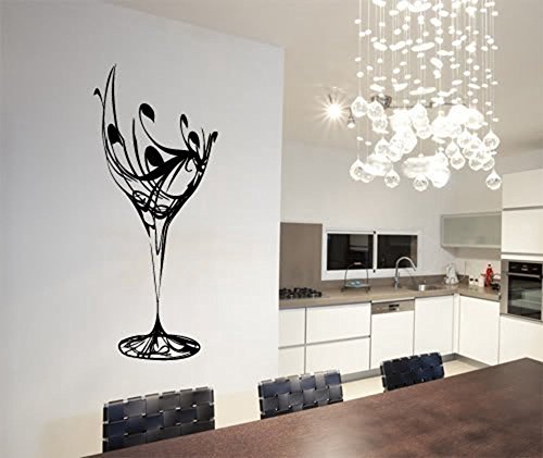 Black Abstract Elegant Wine Glass Wall Decal Kitchen Wall Sticker Removable Vinyl Kitchen Decoration