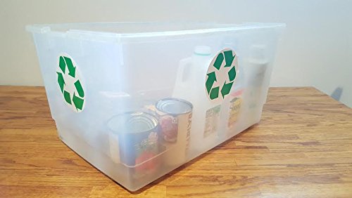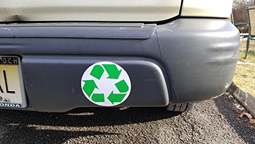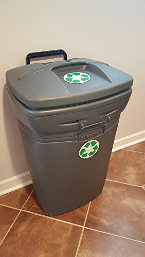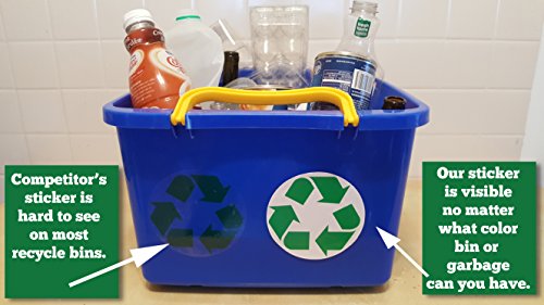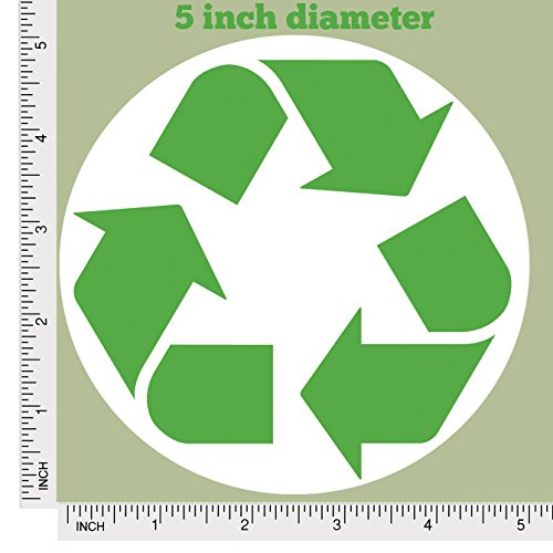 5 pack LARGE recycle symbol sticker for green, white, blue, recycling bins & containers for recycled plastic, paper, cardboard, trash, glass, bottles, aluminum cans and newspaper recyclables.