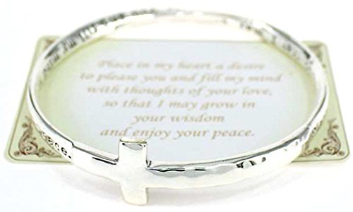 -. Title : Inspirational Hammered Cross Engraved Bracelet with a Prayer Card by Jewelry Nexus