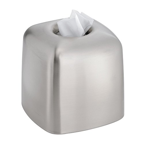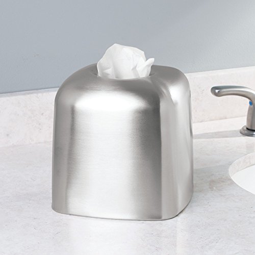 mDesign Square Tissue Box Cover/Holder for Bathroom Vanity, Countertops - Brushed Stainless Steel
