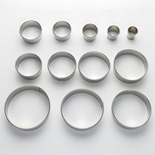 Round Cookie Cutter Fruit Cutter Vegetable cutters Cake cutters Set of 12 by KAISHAN