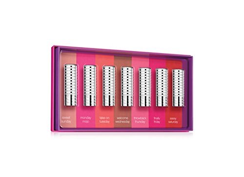 A reason to smile every day of the week: our longest-wearing lipstick formula in 7 limited-edition shades. From Take-On Tuesday (a bright pretty coral) to Sassy Saturday (a rich red), there's a custom-colour for every mood and occasion. Ready to give or keep in a sleek box. Long Last Lipstick in Sweet Sunday, Monday Mojo, Take-On Tuesday, Welcome Wednesday, Throwback Thursday, Finally Friday, and Sassy Saturday, 0.08 oz First: prepare lips for colour with All About Lips. Line and fill lips with Quickliner For Lips; apply lipstick. Allergy Tested. 100% Fragrance Free.Feature