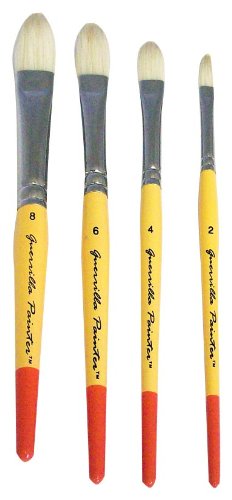 Guerrilla Painter Short Handle Bristle Brush, Set of 4, Filberts