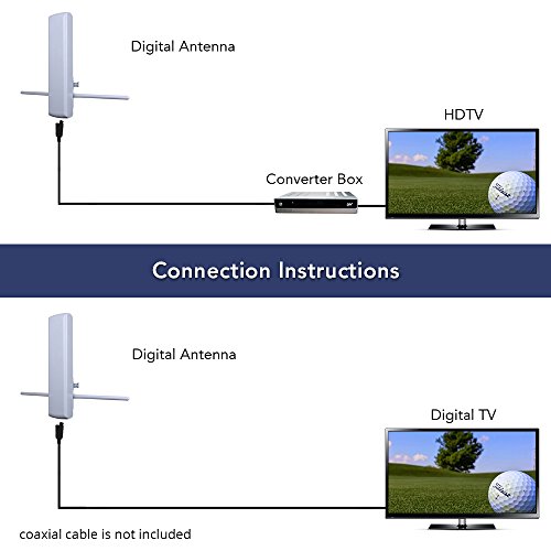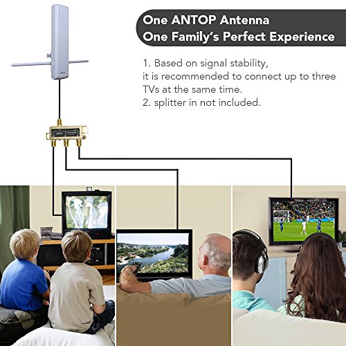 TIPS - Scan channels monthly to find all available channels including newly added or changed. - Do not place or hide the antenna in/behind any metallic objects. - Keep the antenna away from any high power consumption devices to avoid interference. SETTING AND SCANNING 1,Connect the coax cable into the back of your digital-ready TV named "ANTENNA IN" or "AN IN" 2, Open your TV and find "Menu" 3, Go "Setting" then select "Channels setup" Scan for channels 4, If the signal is not good,try move the antenna and find the optimal palcement ANTOP's New Generation Digital Technology 1)Supports?VHF UHF digital signals.Size: 23.82x5.12x4.53in 2)High Gain reception technology, shielded for minimum interference.Supports VHF UHF digital signals. 3)Durable exterior, waterproof design with UV coating. NOTE -Antenna effectiveness is influenced by the distance from signal origination point, station signal strength level, building construction, antenna positioning, reflections from nearby structures and any power consumption sources. -THE AMOUNT OF FREE OVER-THE-AIR CHANNELS YOU CAN RECEIVE WILL VARY BY AREA AND ANTENNA SELECTION, CHECK SIGNAL VAILABILITY AT http://dtv.gov/maps(HTTPS://WWW.FCC.GOV/MEDIA/ENGINEERING/DTVMAPS). BOX INCLUDED: 1* Flat panel TV antenna,Please note:coaxial cable is not include 1* Mast Clamp Kit 1* VHF Enhanced Rods 1* Instruction/User Manual 0 |