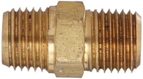 Anderson Metals 56122 Brass Pipe Fitting, Hex Nipple, 1/4" x 1/4" NPT Male Pipe