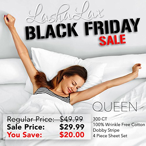 300 Thread Count Wrinkle Free Sheet Set, 100% Cotton Sateen by LushuLux (Queen, Purple)