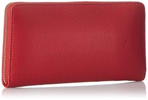 Lined interior flaunts center zip pocket, multiple slip pockets, and eight card slots.