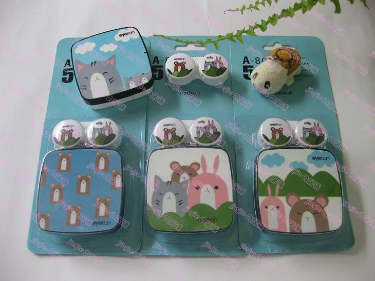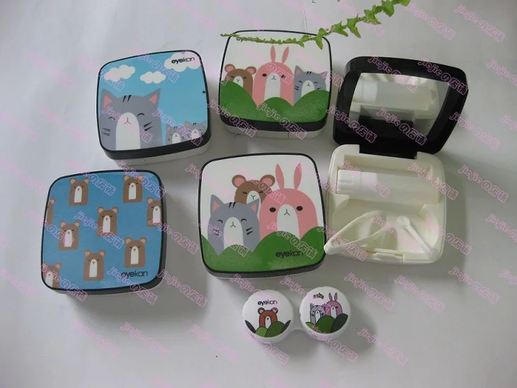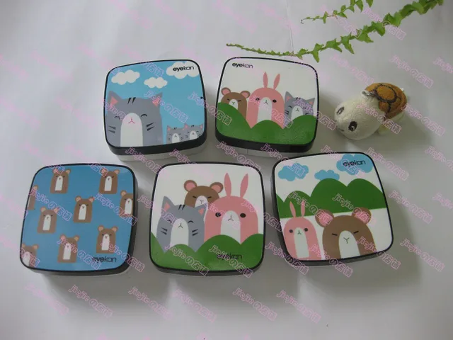 5 개 만화 초록 새로운 안경 상자 콘택트 렌즈 상자 거울 더블 상자 69.7*70.6*22.2 미리메터