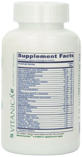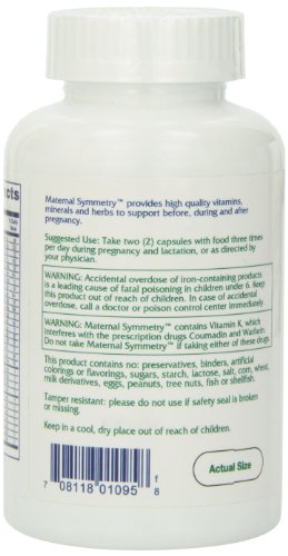 -. Binding : Health and Beauty -. Brand : Vitanica -. EAN : 0708118010958 -. Feature : Vitanica Maternal Symmetry is a high quality, high potency multivitamin and mineral supplement / Vitanica Maternal Symmetry is formulated for pregnancy support / Can be used before, during and after childbirth / Vitanica Maternal Symmetry is a hypoallergenic and preservativefree formula / Contains a higher amount of folic acid supports mother and fetus in development -. IsAdultProduct : 0 -. Label : Vitanica -. Manufacturer : Vitanica -. MPN : VT0032 -. NumberOfItems : 1 -. PackageQuantity : 1 -. PartNumber : VT0032 -. ProductGroup : Health and Beauty -. ProductTypeName : HEALTH_PERSONAL_CARE -. PublicationDate : 2011-04-11 -. Publisher : Vitanica -. ReleaseDate : 2013-01-22 -. Size : 180 Vegetarian Capsules -. Studio : Vitanica -. Title : Vitanica Maternal Symmetry , OB Multivitamin, 180 Vegetarian Capsules -. UPC : 708118010958