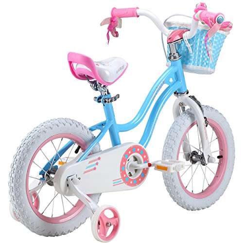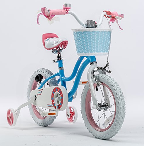 Royalbaby Stargirl Girl's Bike with Training Wheels and Basket, Perfect Gift for Kids. 14 Inch Wheels, Blue