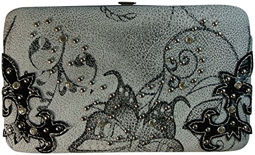 - Feature : Chic fun design! The faux leather exterior has a butterfly and floral print with stud and rhinestone accents / Measures approximately 7.5"W x 4.5"H x 1.25"D- fits easily in your purse or carry as clutch / Back change pocket with magnetic snap closure keeps your change at your fingertips / Interior has 9 cc slots, 2 ID windows and 4 cash/coupon pockets, zippered pocket and pen strap- organization made easy / Removable faux leather checkbook cover included- isn't that thoughtful?!