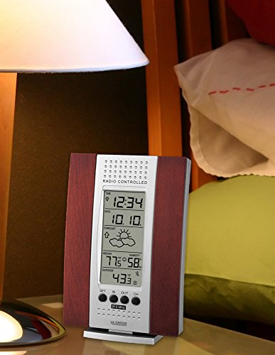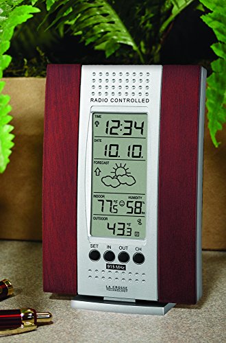 Convenient and table size, La Crosse Technology’s wireless forecast station gives you weather at a glance. Features self-setting Atomic time and automatic updates so you don’t need to reset your clock for Daylight saving time. Displays both Indoor & Outdoor temperature (F/C) and Indoor Humidity (%RH) and weather forecast icons with tendency arrows. Wireless temperature sensor transmits within seconds giving you fast, accurate information.