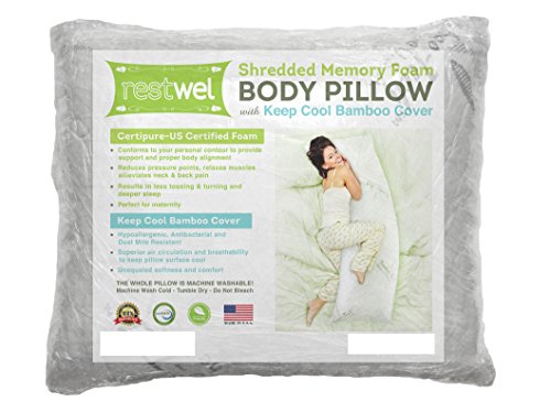 - Title : Hypoallergenic Body Pillow Shredded Memory Foam With Bamboo-Tech Cover - Made in the USA by Restwel - Dust Mite Resistant