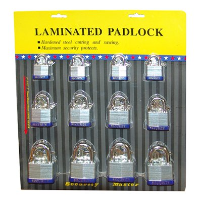 -. Title : 12-pc Assorted "Key-alike " Laminated Padlock Set