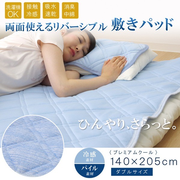【商品名】敷きパッド ダブル 洗える 冷感 涼感 接触冷感 消臭 部屋干し 『プレミアムクール 敷パッド』 約140×205cm