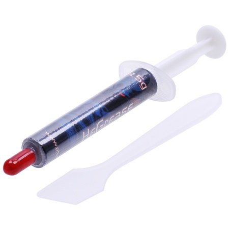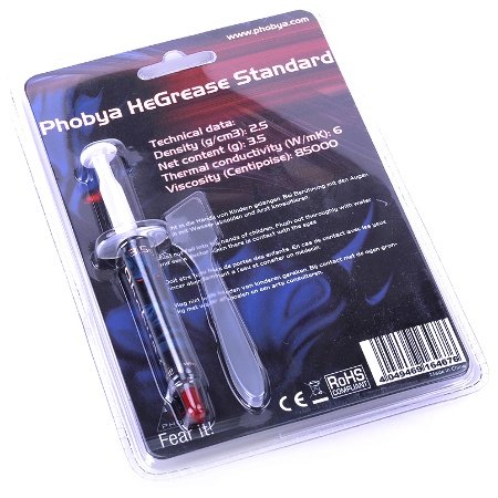 Phobya's HeGrease Extreme, designed to gain the last bit of cooling performance in the high-end sector This thermal compound is of course not only well-suited for the high-end sector, the normal user can also profit from this product. It allows better cooling performance for an existing system with little effort. Phobya has developed a product which offers exceptional performance with a thermal conductivity of 6W/mK But a thermal compound not only needs to offer great thermal conductivity, it must also be easy to use and apply it is especially important that the compound can be applied in a very thin layer on the heat source to have as little distance between heat source and cooler as possible. Not only the optimal viscosity of 85000cps TF makes this easily achievable with this compound, the right tool is also included A handy plastic spatula is included with the Phobya thermal compound. If only part of the compound in the syringe is used, the screw-on cap will preserve the rest of the compound and keep it fresh. And should the compound ever be spilled, there's no need to worry: it is electrically non-conductive. This thermal compound is perfect for YPU, GPU or Chipset applications. Please note: Keep out of the reach of children. In case of contact with eyes, rinse immediately with plenty of water and seek medical advice. 0 |