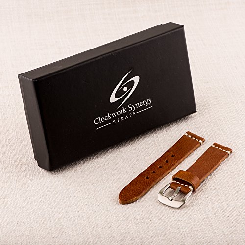 -. Title : Clockwork Synergy Dapper Collection - 20mm Light Brown Worn Leather Watch Band