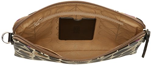 Studio : Orla Kiely Publisher : Orla Kiely Binding : Apparel Product Description Matte laminated travel pouch in the 'sycamore seed' print with leather trims and contrast coloured zip closure. Inside details include sand linear stem jacquard lining, small leather logo card holder pocket, small patch pocket for a passport and mobile slip pocket. Silver coloured hardware. Includes a detachable long strap in double sided webbing that allows the bag to be worn as a shoulder bag or across the body (length 112Cm) or detached and used as a pouch or clutch. 0