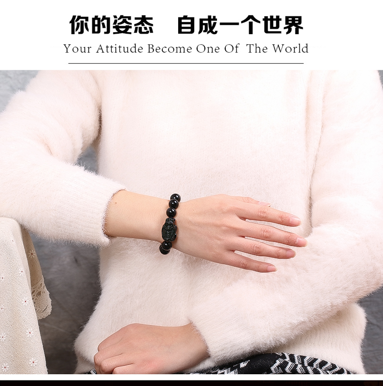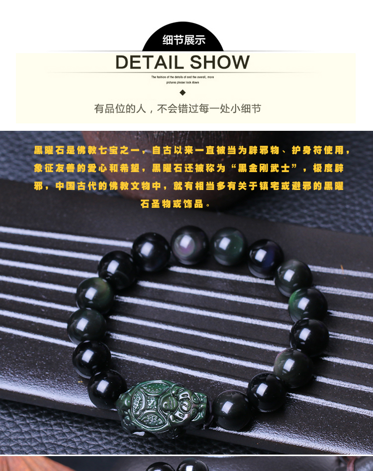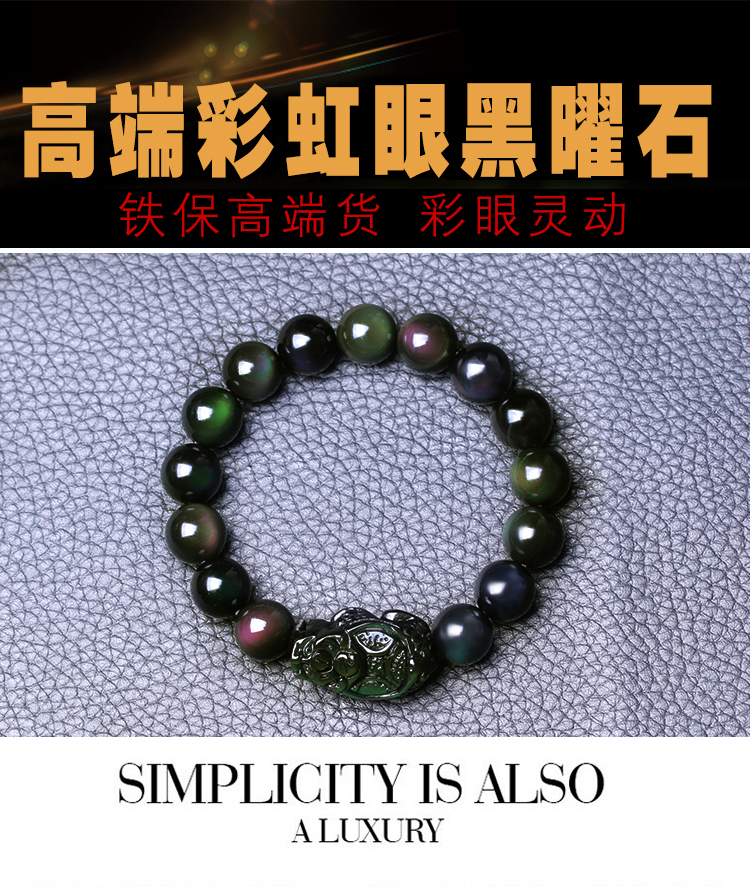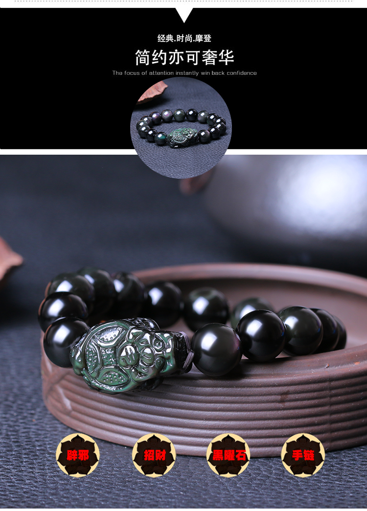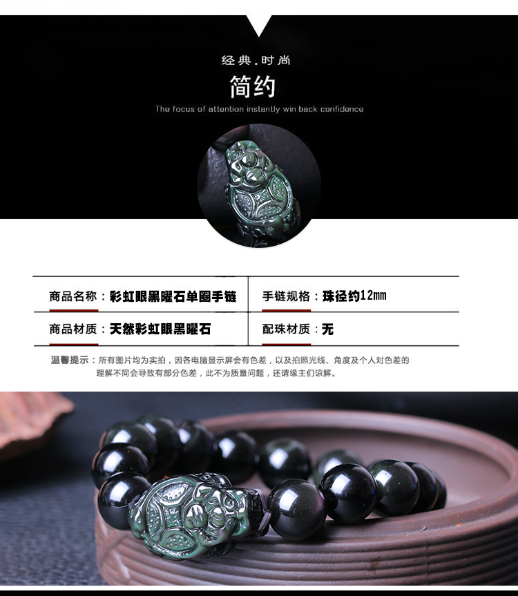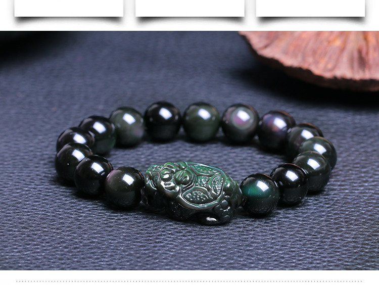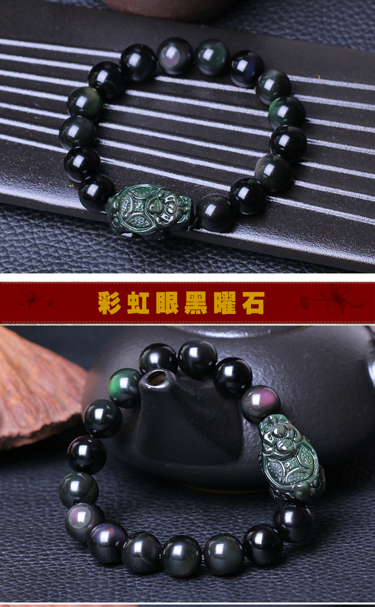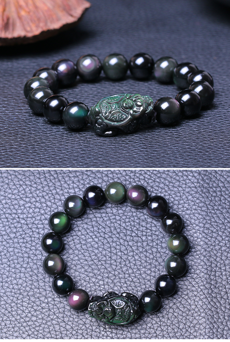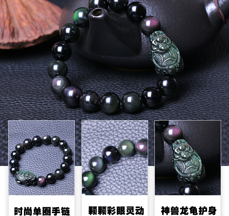 天然彩虹眼龙龟黑曜石手链男女士款单圈手串情侣水晶饰品吉祥礼物