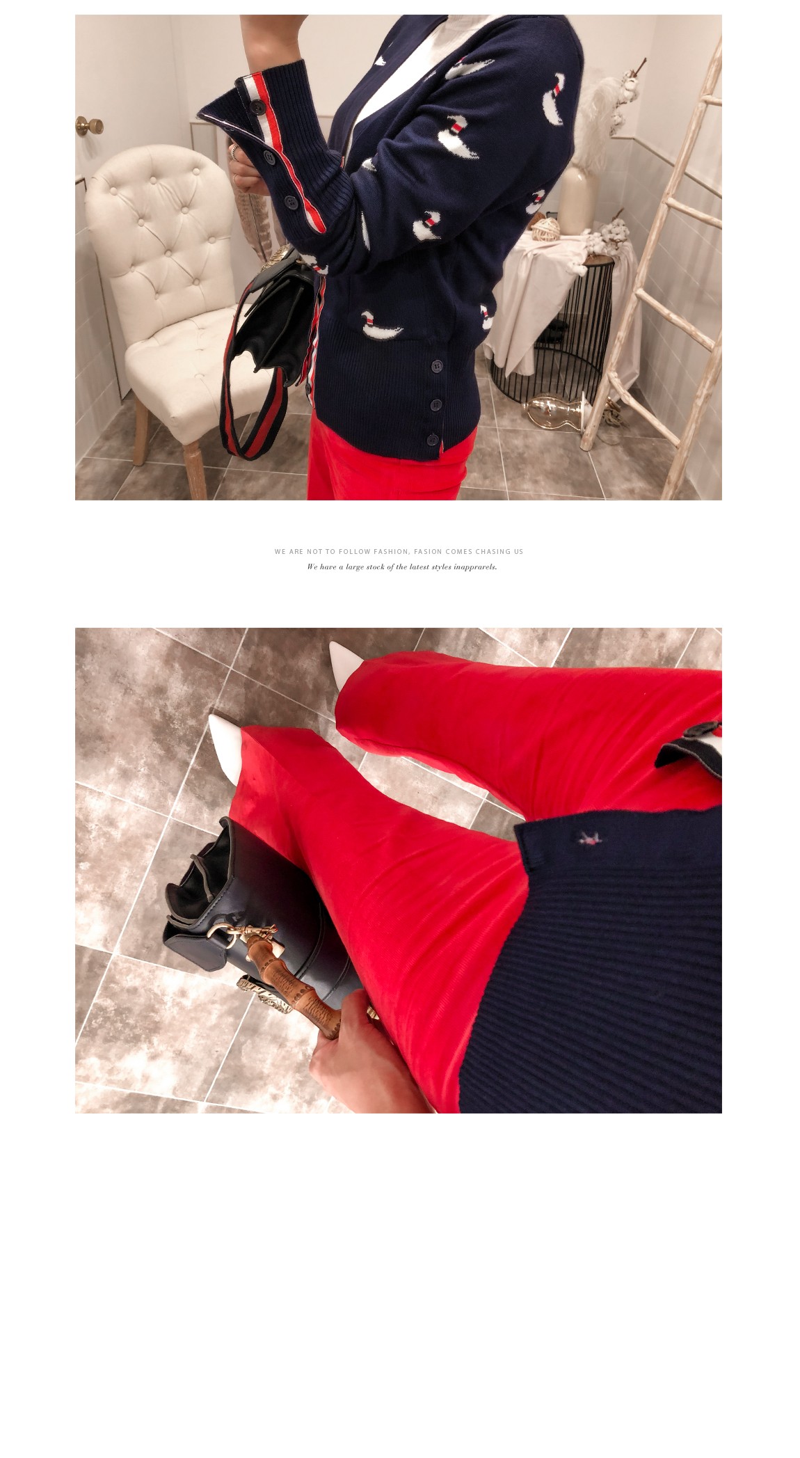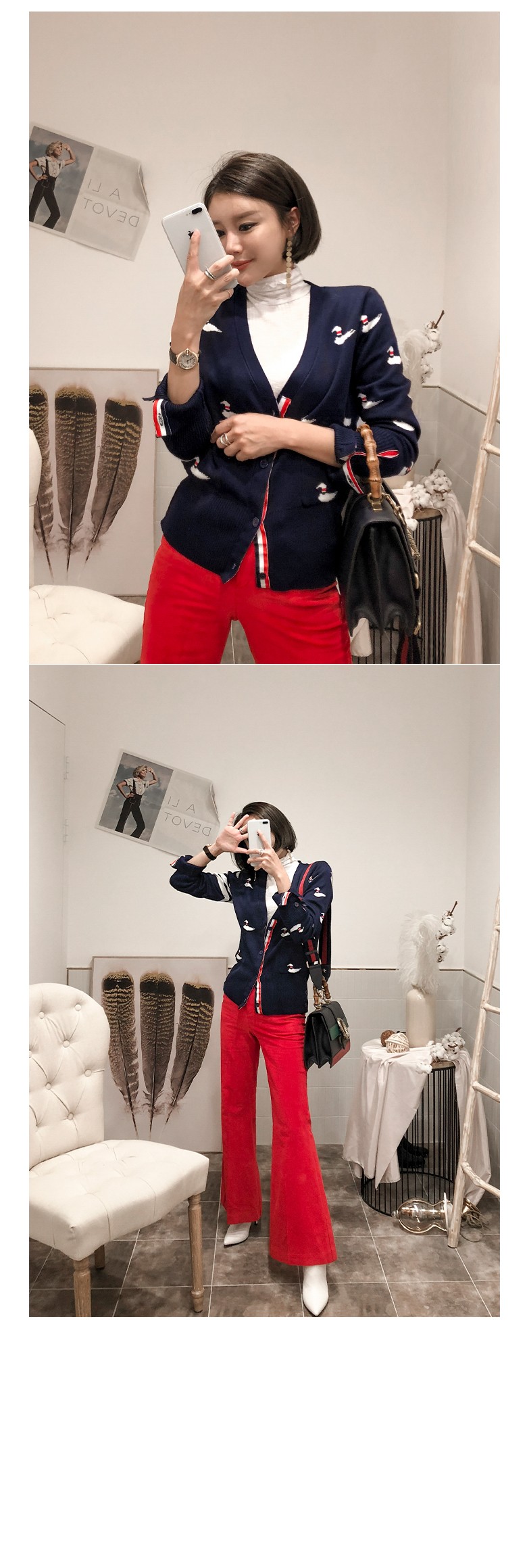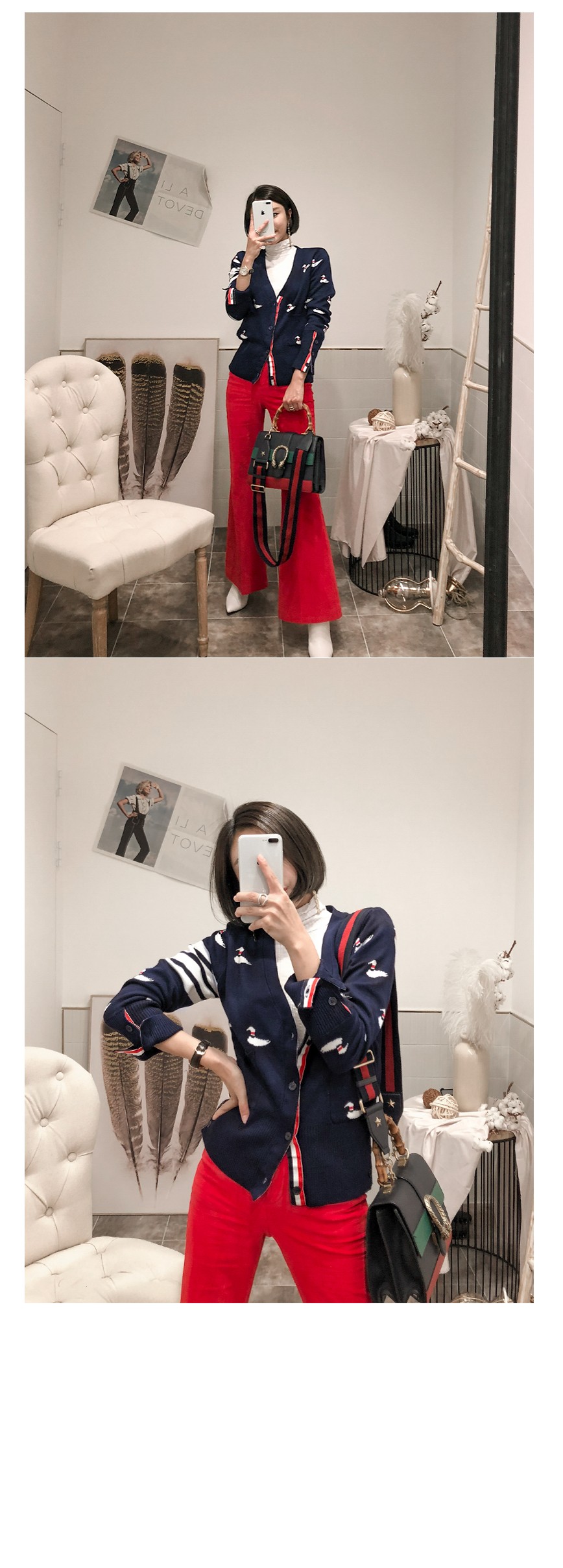 全体的なアヒルパターンが入ってルックにポイントを与えて