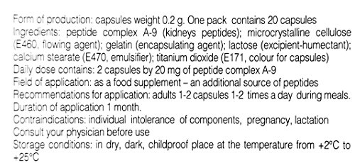 Studio : Firm VITA Publisher : Firm VITA Binding : Health and Beauty Product Description The importance of kidney function Renal function is a crucial factor in our chemical health, which becomes more difficult to maintain as we age. The kidneys are made up of a million operating units called nephrons. They're responsible for filtering the blood of toxins, and supplying the body's chemical needs via the blood. Deficiency in kidney function for over a month is classed as Chronic kidney disease, it can be extremely dangerous, and potentially fatal. What is a peptide bioregulator A peptide is a short chain of amino acids, identified by the fact that it is shorter than a protein, and so can be absorbed easily via the digestive system. Each organ or bodily function has its own unique peptide bioregulator. Peptide bioregulators have been shown to shortcut the protein synthesis process by interacting directly with cell DNA - meaning that organs can build and repair tissues easier and quicker when peptide bioregulators are active. 0