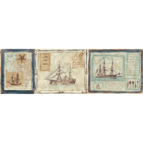 -. Title : Decorate By Color BC1581839 Blue and Beige Ships Border