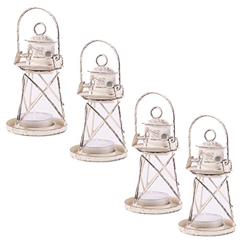White Light House Tea Light Holder by Clever Creations | 4 Pack Decorative Candle Holder | Quality Stainless Steel Construction | Rustic Design | Indoor & Outdoor Use