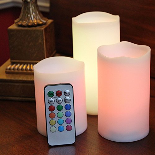 Candle Choice Vanilla Scented Real Wax Color Changing LED Flameless Candles with Remote & Timer, Set of 3