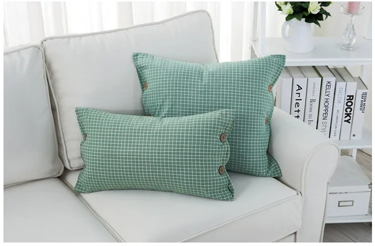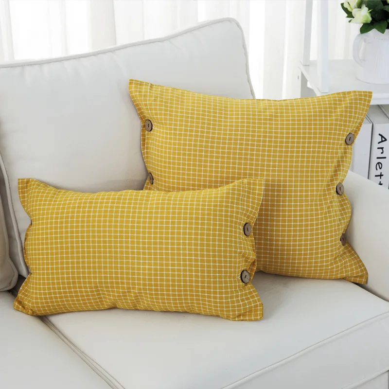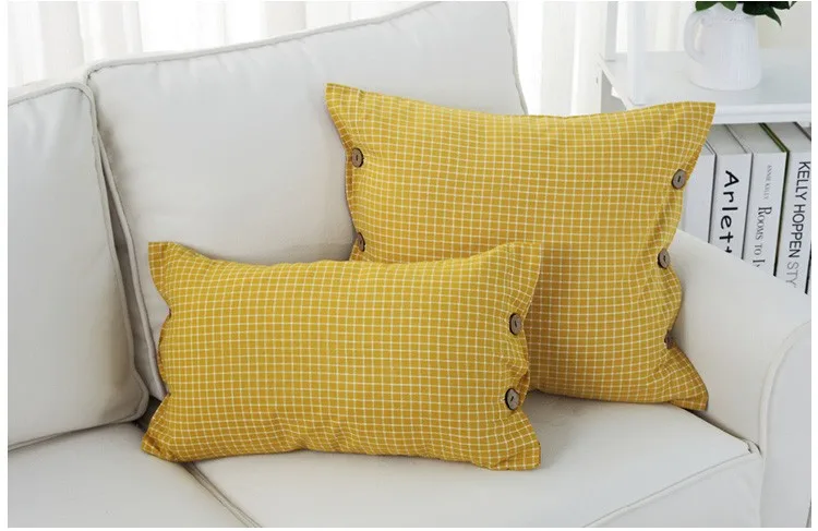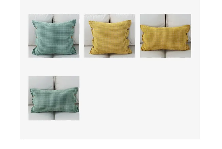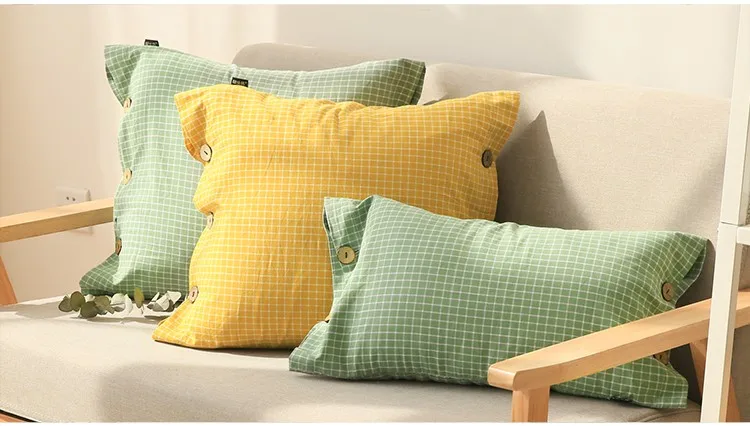 Pattern:Lattice Yellow Green Button Cushion Cover